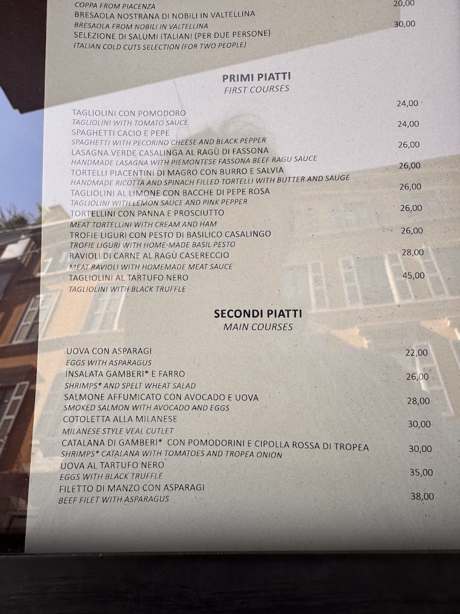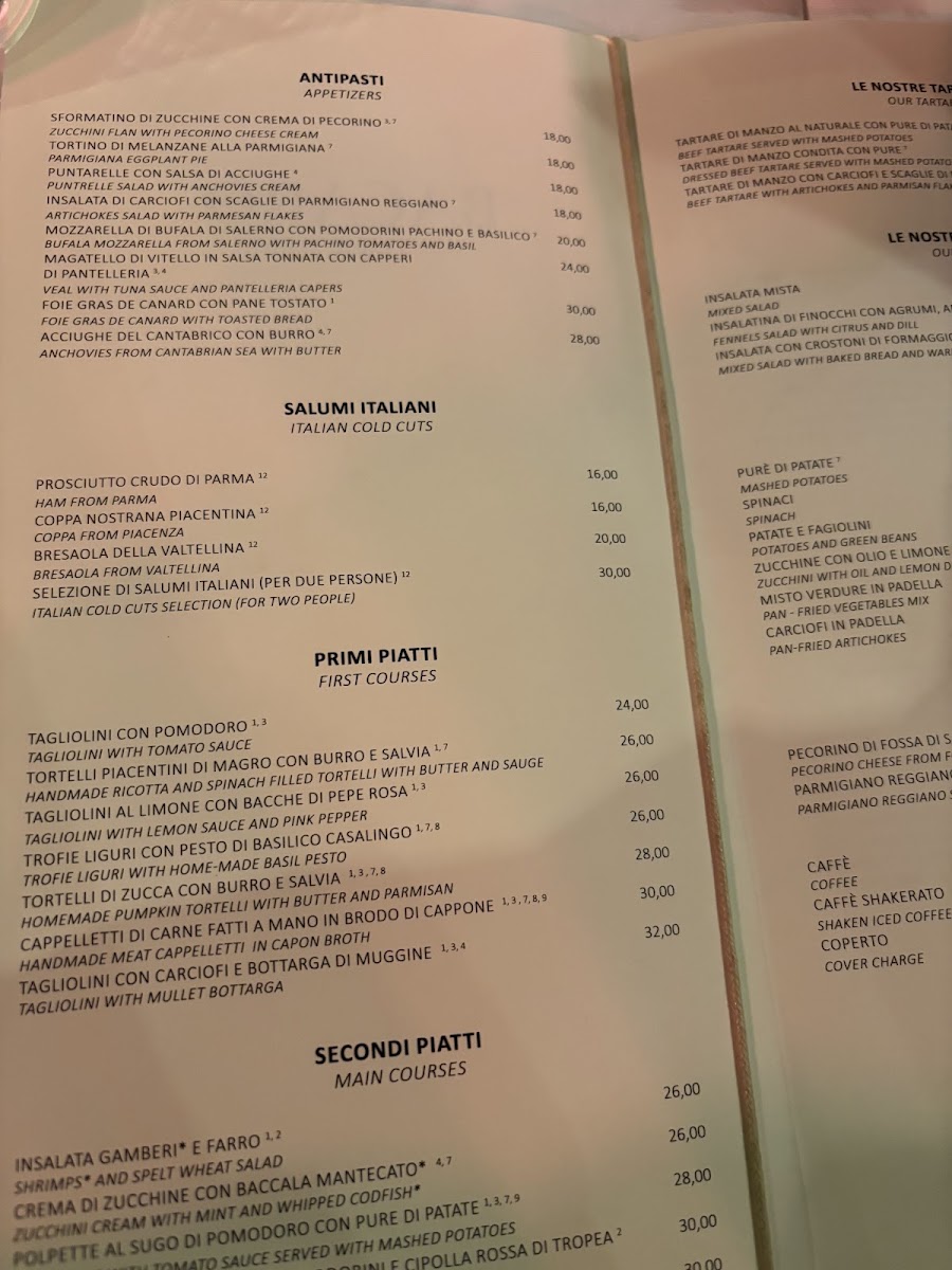 Guests can expect dishes that highlight fresh, quality ingredients and familiar flavors presented with care. Examples include comforting pasta options like Pesto Pasta and the distinctive Tortelli di Erbette Menta e Parmigiano, or heartier choices such as Veal Cheeks and Italian Salumi. Light finishes such as Tiramisù provide a gentle, satisfying conclusion to the meal.