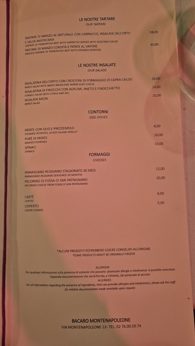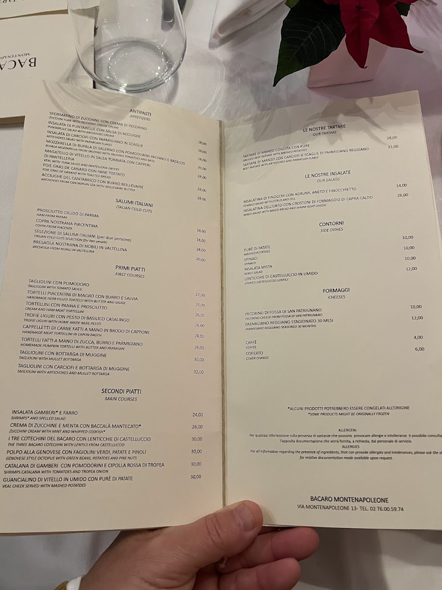Bacaro Montenapoleone Menu